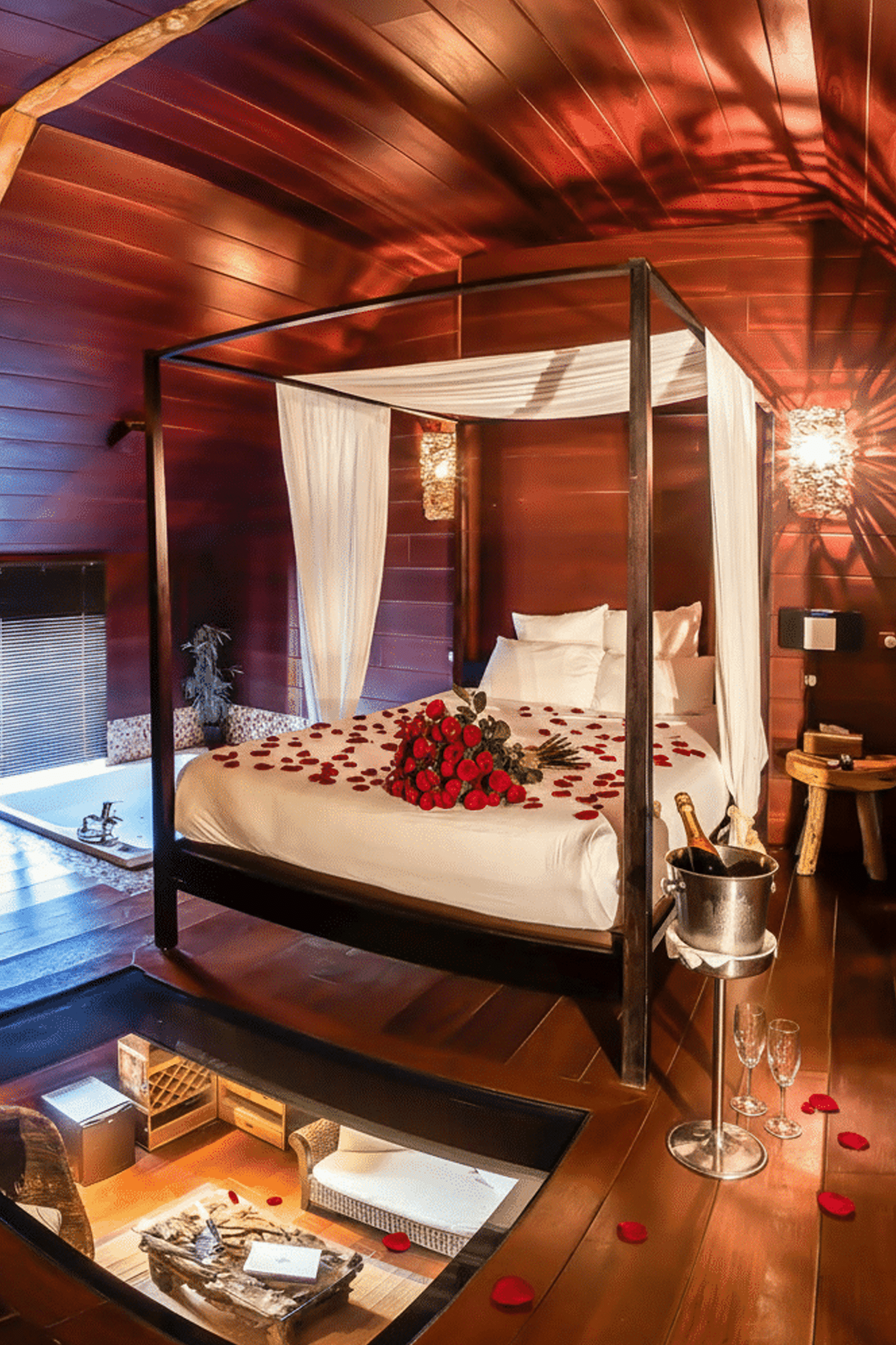 Une attention particulière apportée à la chambre pour une ambiance romantique inoubliable.
