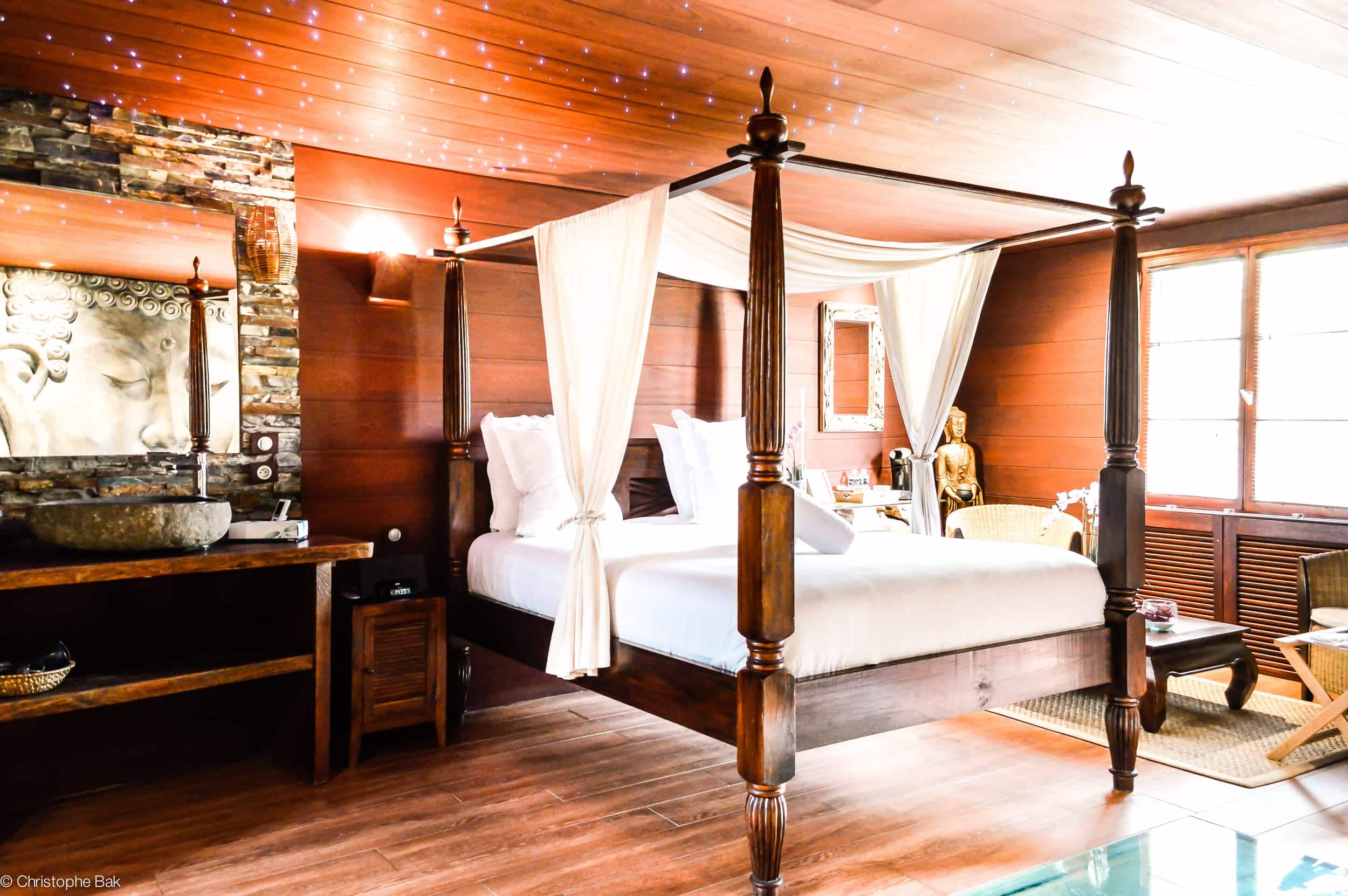 Ici, tout est pensé pour le romantisme : lumière tamisée, pétales de rose, champagne en chambre et ambiance cocooning.