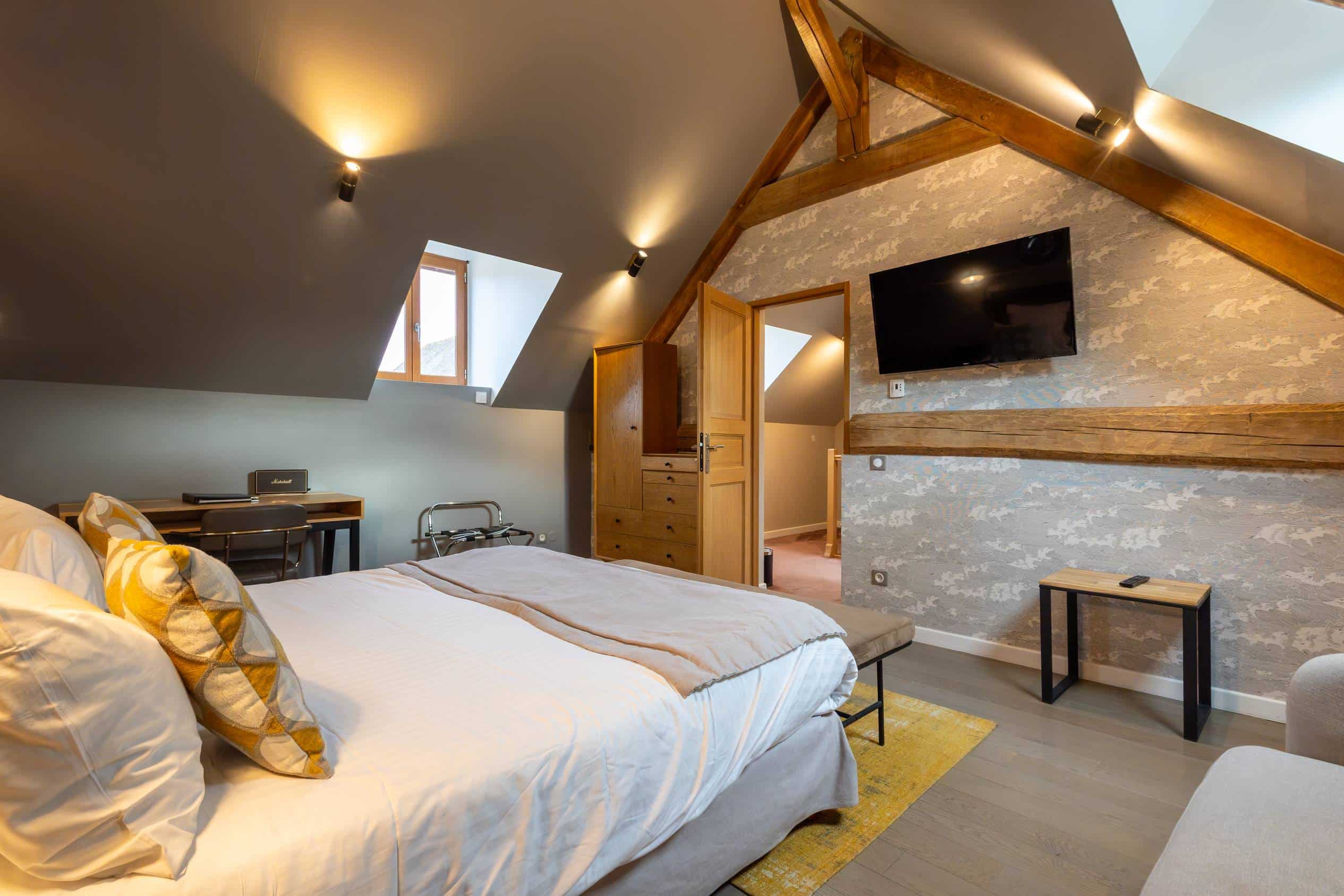 Alliant tradition et modernité, cette chambre de 30 m² vous séduira par son style soigné, sa décoration raffinée et son ambiance chaleureuse.